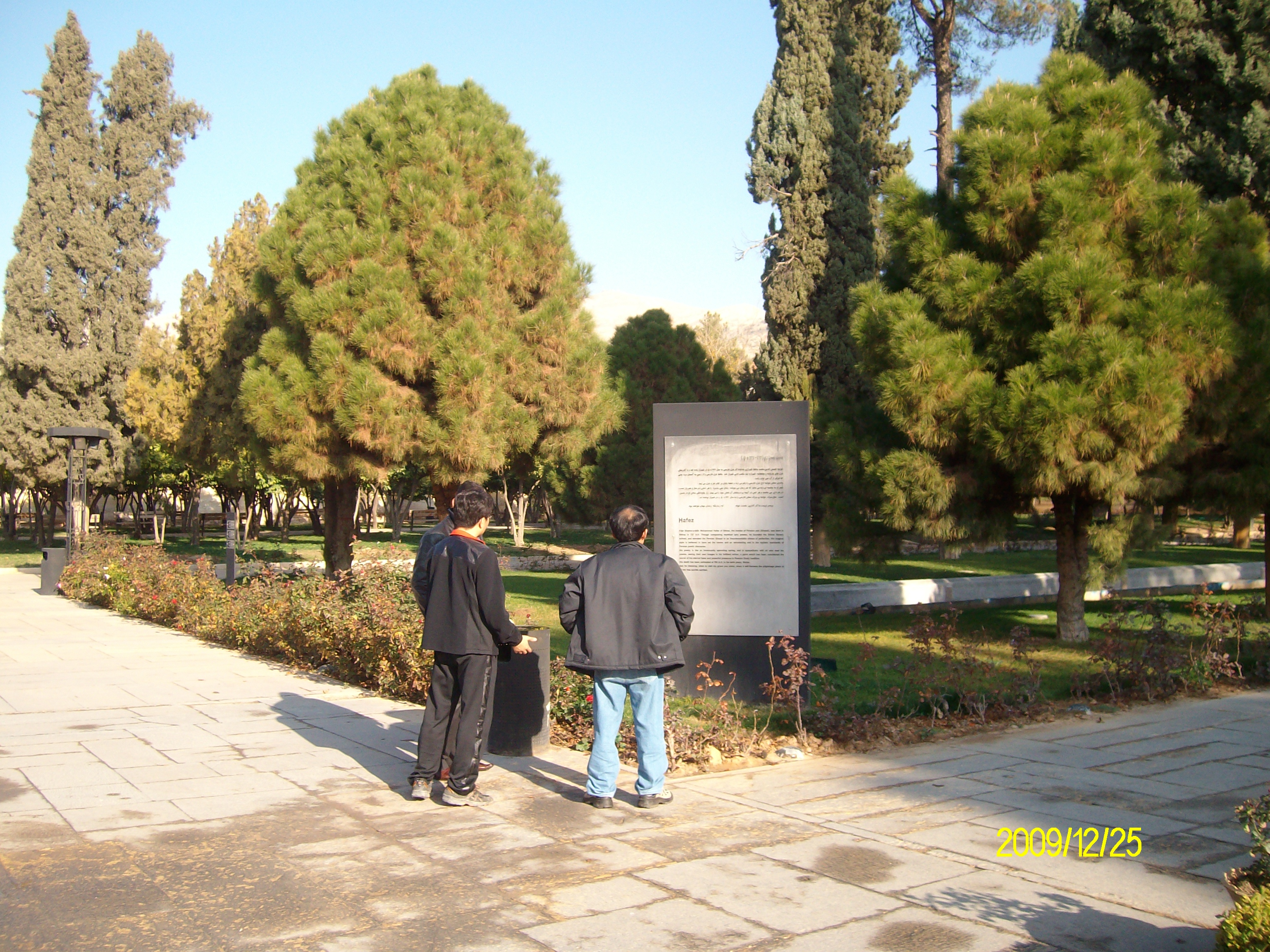 시인 사디에 대한 안내문을 읽고 있는 필자- 청바지에 점퍼차림