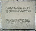 사건 장소에 있던 기념 명판과 재현해 놓은 범인의 발자국. 1987년에 촬영되었으며 보스니아 전쟁이 진행 중이던 1992년에 파괴되었다.