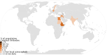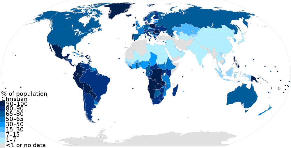 기독교의 네 개의 가장 큰 지점은 가톨릭 교회 (13 억 / 50.1%), 개신교 (9억 2천만 / 36.7%), 동부 정교회 (2억 3천만) 및 동양 정교회 (6200 만 / 정교회 결합 11.9%),[13] [14]통일을 향한 다양한 노력 가운데 (에큐메니즘). [15] 서구의 준수가 감소했음에도 불구하고 기독교는 이 지역의 지배적인 종교로 남아 있으며, 인구의 약 70%가 기독교인으로 식별되고 있다. [16] 세계에서 가장 인구가 많은 대륙인 아프리카와 아시아에서 기독교가 성장하고 있습니다. [17] 기독교인들은 특히 중동,북아프리카, 동아시아 및 남아시아에서 전 세계 일부 지역에서 박해를 받고 있습니다. [18][19]