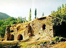 The 7th-century Khor Virap monastery in the shadow of Mount Ararat; Armenia was the first state to adopt Christianity as the state religion, in AD 301.[82]