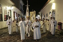 In the liturgical branches (e.g. Catholicism or Eastern or Oriental Orthodoxy), those who die in a state of grace, i.e., without any mortal sin separating them from God, but are still imperfectly purified from the effects of sin, undergo purification through the intermediate state of purgatory to achieve the holiness necessary for entrance into God's presence.[89] Those who have attained this goal are called saints (Latin sanctus, "holy").[90]