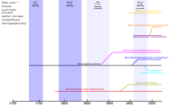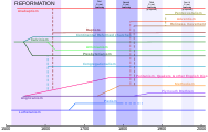동교회는 에베서스 의회(431)와 동양 정교회가 크리스탈로지의차이를 놓고 갈라진 후 분열되었고,동부 정교회와 가톨릭 교회는 동서 분열(1054년)에서 분리되어 특히 로마 주교의권위를 둘러싸고 분열되었다. 여러 교단의 개신교는 종교 개혁 시대(16세기)에 있는 가톨릭 교회에서 신학적 및 민족적 논쟁을 둘러싸고, 대부분 로마 주교의 정당성과 우선주의에관한 것이다. 기독교는 서구 문명의 발전에 중요한 역할을했다, 특히 후기 고대와 중세에서유럽에서. [5][6] [7][7][8][9] 발견의 시대 (15~17세기) 기독교는 미주, 오세아니아, 사하라 사막 이남의 아프리카,그리고 선교 사업을 통해 전 세계로 퍼졌다. [10][11][12]