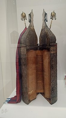 전통적으로 토라의 말은 히브리어로 서기관(소파)에의해 두루마리에 기록되어 있습니다. 토라 부분은 회중이있는 곳에서 적어도 3일에 한 번씩 공개적으로 읽습니다. [7] 토라를 공개적으로 읽는 것은 유대인 공동체 생활의 기지 중 하나입니다.