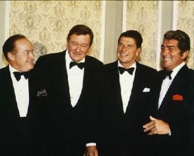 듀크라는 별명의 서부의 사나이 존 웨인. 아래의 사진은 레이건 대통령의 초청을 받아 백악관을 방문한 존웨인, 밥 호프, 딘 마틴. 이들은 모두 대통령과 환담을 나누었다는 자랑으로 그날 밤에 잠을 이루지 못했다고 한다. 그 전날 밤에는 백악관의 초청으로 대통령과 함께 오찬을 나누게 되었다는 생각으로 역시 잠을 못 이루었다고 한다.