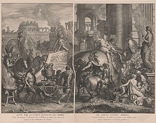 Demades likened the Macedonian army, after the death of Alexander, to the blinded Cyclops, due to the many random and disorderly movements that it made.[174][175][176] In addition, Leosthenes, also, likened the anarchy between the generals, after Alexander's death, to the blinded Cyclops "who after he had lost his eye went feeling and groping about with his hands before him, not knowing where to lay them".[177]