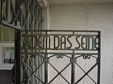 1937년, 나치 정권은 바이마르 시 근교에 부헨발트 강제 수용소를 건설해, 그 슬로건으로서 「각자에게 각자의 것을」(Jedem das Seine)을, 정문의 문의 상부에 문의 안쪽으로부터 읽어낼 수 있는 틈새를 만들어 문자로서 내걸었다. 이는 아우슈비츠, 다하우, 성장 로젠, 작센하우젠, 테레지엔슈타트의 강제 수용소로 내건 「노동이 그대를 자유케 하리라」(Arbeit macht frei)와 같이, 당시 잘 이용된 전형적인 선전 표어였다.