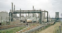 Teesside 산업은 영국 북동부의 상품 및 통합 화학 생산자가 지배합니다 공정 산업 클러스터 (NEPIC). 이 회사들은 Wilton,[7] Billingham 및 Seal Sands의 세 개의 대형 화학 공장을 기반으로합니다. 이 회사들은 석유 화학 제품, 원자재 화학 물질, 비료 및 폴리머와 같은 제품을 만듭니다.