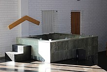 일부 서비스는 일요일에만 대여 된 극장, 학교 또는 다목적 객실에서 진행됩니다. [79][80][81] 십계명의 둘째 계명에 대한 이해로 인해 일부 복음주의자들은 예배 장소에 동상, 아이콘, 그림 같은 종교적 물질적 표현을 가지고 있지 않다. [82][83] 일반적으로 찬셀(성소라고도 함) 또는 무대로 다양하게 알려진 것에 대한 세례당이 있는데, 비록 그들이 별도의 방에서 발견될 수도 있지만, 침수에 의한 침례를 위해서이다. [84][85]