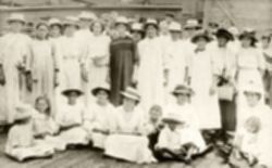 1916년, 핏케언 섬을 방문한 영국 해군 함정에서 촬영된 핏케언 섬 정착자들의 후손들. 이 때 섬의 인구는 약 150여명으로 추정된다. 다시 100년이 지난 2010년대에는 6배인 1천 명이 됐다. 하지만 정작 지금도 핏케언 섬에 사는 인원들은 그 중에서도 소수다.