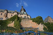 12세기 후반의 약간 더 최근의 건축 조치는 중세 후기 성 단지(소위 spolia )에서 이차적으로 벽으로 둘러싸인 엮은 밴드로 장식된 돌과 같은 몇 가지 오래된 구성 요소로 거슬러 올라갈 수 있습니다. ). 그러나 Landgrave Ludwig II 하에 수행되었을 것으로 추정되는 이번 확장의 범위와 모습은 단정 할 수 없습니다. 1180/90경에 서쪽으로 상당히 확장된 시장 정착의 첫 번째 성벽 의 건설로 인해 성 바로 주변의 변경이 필요하게 되었습니다 . 서쪽 날개의 두 지점과 빌헬름스바우 지하실 아래에서 발굴 작업을 통해 도시 성벽과 성의 고리 벽 사이의 연결이 드러났습니다.