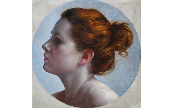 “Phoebe on Valencia Blue” by N. Michelle TULLY, oil on linen, 2021