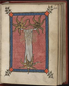 초기 기독교에서 미스티코스( mystikos )라는 용어 는 곧 성경적, 전례적, 영적 또는 관상적 차원으로 얽혀 있는 3차원을 가리켰습니다. [5] 성경적 차원은 성경에 대한 "숨겨진" 또는 비유적 해석을 의미합니다 . [3] [5] 전례 차원은 성찬례의 전례 신비, 성찬례 에 그리스도의 임재를 가리킵니다. [3] [5] 세 번째 차원은 하나님에 대한 관상적 또는 체험적 지식이다. [5]