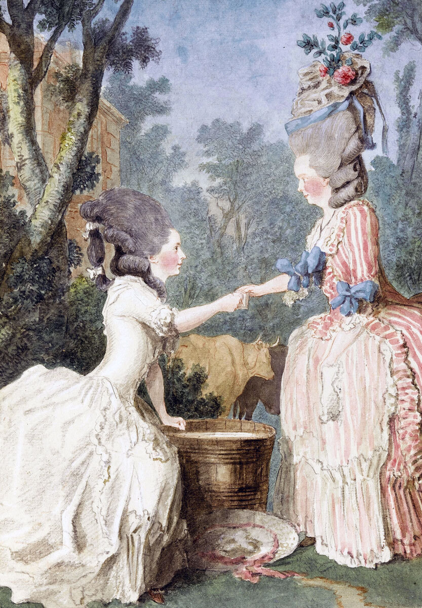 루소가 목가적 순수함과 여성의 "자연스러운" 순수함과 단맛으로 확인한 물질인 우유는 자연으로 돌아가는 건강 캠페인의 필수적인 부분이었습니다.6의사들은 특정 질병과 체질을 치료하는 데 우유의 효능에 대해 논쟁을 벌였지만, 일반적으로 우유는 신체의 채널을 관통하고 열어 신선한 공기가 들어가고 독소가 빠져나갈 수 있도록 하는 비폭력 정화제로 기능하는 것으로 믿어졌습니다. 또한 폐, 가슴 및 장의 장애물을 제거하여 신체를 최적의 균형이나 흐름으로 되돌리는 데 사용할 수 있습니다. 백과 사전 (1751-1765)의 우유에 관한 기사에서 프랑스 왕실 의사 가브리엘 프랑수아 베넬 (Gabriel-François Venel)은 가슴 및 위장 질환, 발열, 통풍 및 성병과 함께 신경 질환 치료에 성공했다고 선전했습니다. Venel은 우유를 처방하는 것을 선호했지만 다른 의사들은 나귀, 염소 또는 심지어 인간의 모유가 더 우수하다고 주장했습니다. 그는 또한 연약한 환자가 유청이나 응고 후 남아있는 우유의 물 부분은 전유보다 소화하기 쉽기 때문에 마실 것을 권장했습니다. 유청은 이 시기에 놀라울 정도로 증가하고 있다고 생각되는 "연골 저하증 및 히스테리성 질환"으로 고통받는 사람들, 특히 여성들에게 특히 좋은 것으로 간주되었습니다.7