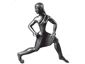 젖가슴을 드러낸 채 짧은 치마를 입고 달리기하는 스파르타의 여인상