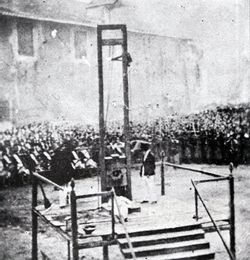 1868년 11월 24일 이탈리아 통일주의자였던 주세페 몬티와 가에타노 토녜티의 처형.[14]