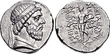 바빌론에 있는 동안 아르사시드(파르티아) 왕의 표준 왕칭호는 아르샤카 샤루("아르사시드 왕"), 왕 중의 왕(현대 바빌로니아인에 의해 샤르 샤라니로 기록됨)[21]은 미트리다테스 171세(r. 132-22 BC)에 의해 처음 채택되었지만 드물게 사용했습니다. [23][111] 이 칭호는 미트리다테스 4세의 조카인 미트리다테스 91세에 의해 처음 일관되게 사용되기 시작했으며, 기원전 24년에 이 칭호를 채택한 후 기원전 25년까지 그의 주화(그리스어 BAΣIΛEΥΣ BAΣIΛEΩN)[4]에도 포함시키기까지 광범위하게 사용했습니다. [<>] 미트리다테스 <>세와 그의 후계자들이 이 칭호를 사용한 것은 옛 아케메네스 왕조 제국 칭호의 부활이 아니라(미트리다테스 <>세가 메소포타미아를 정복한 후 거의 <>년이 지나서야 사용되었기 때문에) 실제로 파르티아 왕에게 자신의 조상의 제국 칭호를 부여한 바빌로니아 서기관들. [<>] 그가 어떻게 칭호를 얻게 되었는지에 관계없이 미트리다테스 <>세는 아케메네스 왕조 전통의 상속자이자 복원자로 보이기 위해 의식적인 조치를 취했으며, 파르티아 주화에 관례적인 헤드기어로 왕관을 도입하고 서쪽으로 이전 아케메네스 왕조 땅으로 여러 캠페인을 수행했습니다. [<>]