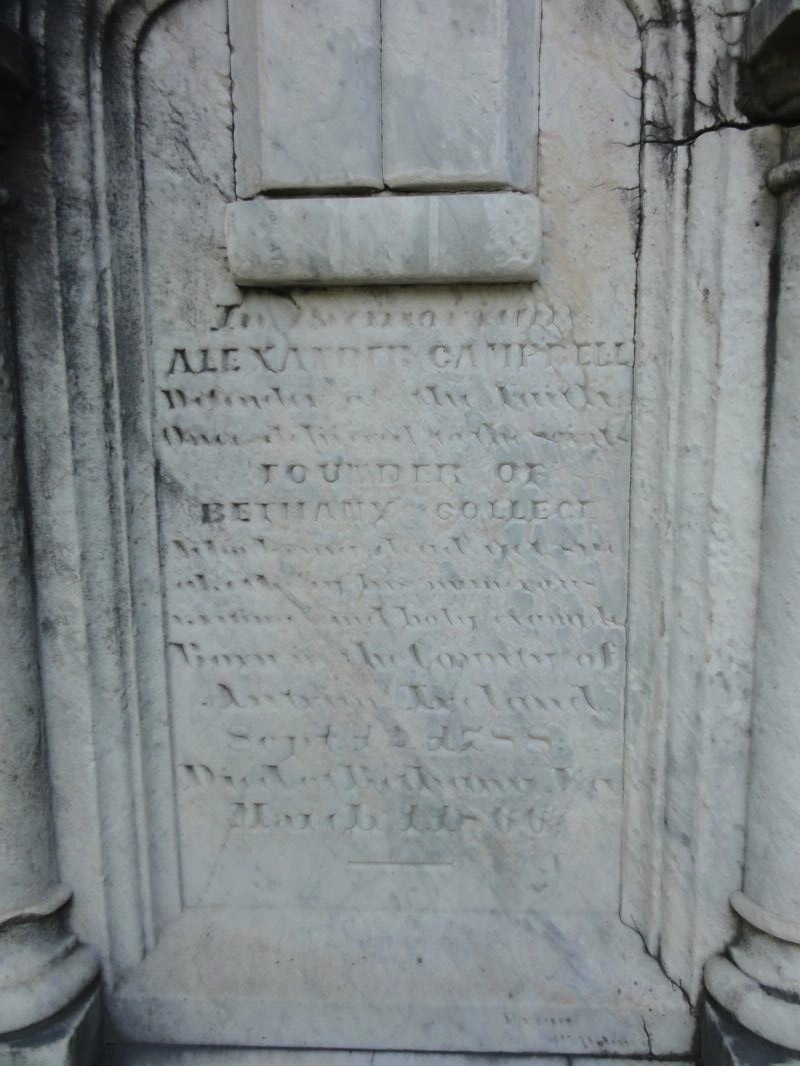 Alexander Campbell)은 죽었지만 그의 수많은 글과 거룩한 모범 으로 말하는 베다니 칼리지 의 설립자 성도들에게 한때 전달된