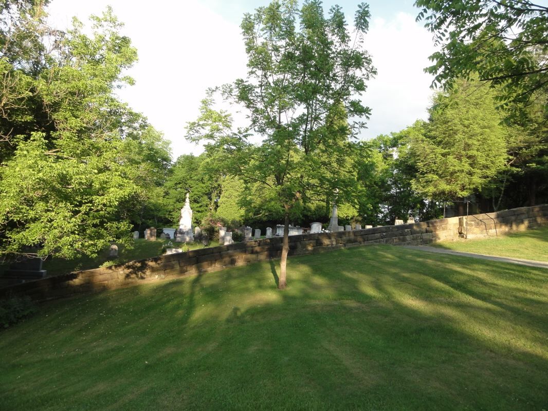 펜실베이니아 주 워싱턴에서 - I-70의 17번 출구/Jefferson Avenue를 타고 북쪽으로 향합니다(워싱턴에서 멀어짐). 18/844. 18번과 844번이 갈라지면 반드시 844번에서 좌회전하세요. 몇 마일을 가다가 Hwy 331/Brush Run Road에서 좌회전하세요. (모퉁이에는 몇 년 동안 빨간 헛간이 있어 Hwy. 844에서 Hwy. 331/Brush Run Road로 가는 곳을 알 수 있는 좋은 랜드마크가 되었습니다. 좌회전. 고속도로. 231은 다시 고속도로로 들어갑니다. 우회전하여 베다니로 향합니다. 베다니의 첫 번째 모습은 오른쪽에 있는 오래된 캠벨 맨션입니다. 가능하면 이 집을 통과하세요. 좋습니다. 다른 사람이 안내해 줄 수 있도록 미리 전화하세요. 혼자 들어갈 수는 없습니다. 하지만 맨션을 지나서 공동묘지로 가는 작은 길에서 좌회전하세요. 언덕을 올라갈 때 왼쪽에 있어야 합니다. 묘지는 큰 바위로 둘러싸여 있습니다. 계단에서 묘지에 들어가십시오.