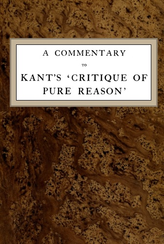 독일 주석가들 중에서 나는 Vaihinger, Adickes, B. Erdmann, Cohen, Riehl, 특히 첫 번째 이름을 가진 사람들에게 가장 많은 빚을 졌습니다. 칸트에 대한 영국의 주요 저술가는 그린(Green), 케어드(Caird), 애덤슨(Adamson)입니다. Green과 Caird가 비판 철학을 헤겔적 관점의 중간 단계로 취급하는 한, 나는 그들과 자주 의견이 일치하지 않는 나 자신을 발견합니다. 그러나 그들의 글에 대한 나의 빚은 그들의 견해에 대한 나의 이따금 비판이 암시하는 것처럼 보이는 것보다 훨씬 더 큽니다. 로버트 애덤슨과 나는 칸트의 가르침에 대한 그의 초기 견해가 그의 사후 출판된 대학 강의에서조차 명백했던 것보다 더 급진적인 방식으로 수정되고 있던 시기에 개인적인 토론의 특권을 누렸다. 그의 제안의 자극으로 인해 이 주석이 작성 되었습니다.