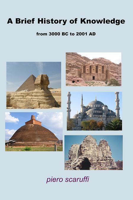 | 최초의 문명이 나타났을 때(메소포타미아, 이집트, 인도, 중국) 문명은 주로 자연 환경과 기후의 제약을 받았습니다. 종교, 과학, 예술은 주로 계절과 홍수와 같은 인간 이외의 요인에 의해 결정되었습니다. 수세기 동안 인간은 방정식을 유리하게 변경하여 자연 현상이 문명에 미치는 영향을 줄이고 문명이 자연에 미치는 영향을 증가시켰습니다(더 좋든 나쁘든). 이것이 일어난 방법은 거의 지식의 역사입니다. 지식은 무엇보다 변화의 '대상'이 아니라 변화의 '주체'가 되기 위한 도구였다. 가장 중요한 발명품은 선사 시대부터 시작되었으며 "역사"는 그러한 발명품의 적용에 지나지 않는다고 주장할 수 있습니다. 다음은 간략한 설명입니다(괄호 안은 우리가 지금까지 발견한 최초의 표본과 발견된 장소): 도구(200만 년 전, 아프리카), 불(190만 년 전, 아프리카), 건물(기원전 400,000년, 프랑스) ), 매장(기원전 70,000년, 독일), 예술(기원전 28,000년), 농업(기원전 14,000년, 메소포타미아), 가축화(기원전 12,000년), 배(기원전 8,000년, 네덜란드), 무기(기원전 8,000년), 도자기(기원전 7,900년, 중국), 직조(기원전 6,500년, 팔레스타인), 화폐(문자가 발명되기 전 어느 때, 메소포타미아), 악기(기원전 5,000년, 메소포타미아), 금속(기원전 4,500년, 이집트), 바퀴(기원전 3,500년, 메소포타미아), 문자( 기원전 3,300년, 메소포타미아), 유리(기원전 3,000년, 페니키아), 해시계(기원전 3,000년, 이집트). 최초의 주요 문명은 강 계곡에서 탄생했습니다. 중앙 집중식 권위주의 정권은 대규모 관개 농업의 직접적인 결과입니다. 강의 힘을 이용하는 문제, 즉 정확하고 시기 적절한 상수도 건설 문제는 수천 명의 사람들을 동원하고 조정하는 대량 노동에 의해서만 해결될 수 있습니다. 중앙 집중식 계획을 중심으로 조직되고 절대 규율을 부과할 수 있는 사회에서만 가능합니다. 가장 큰 강일수록 부에 대한 약속이 클수록 "수압 상태"는 더 강해져야 합니다. 수도 공사를 위해 동원된 대중은 피라미드, 사원, 요새와 같은 다른 집단적 노력을 위해 동원될 수 있습니다. 항해가 가능한 강은 무역과 전쟁을 위해 다른 공동체와 교류하기 위한 인프라를 제공했습니다. 인프라가 갖춰지자 농업, 건축(수메르인의 지구라트에서 이집트인의 피라미드, 그리스인의 사원에 이르기까지), 관료제(수메르인의 도시 국가에서 이집트 왕국, 페르시아 제국에서 아테네의 경제 제국까지), 정치(메소포타미아와 이집트의 신정에서 아테네의 민주주의까지), 종교(메소포타미아의 의인화된 신에서 이집트의 복잡한 형이상학까지, 페르시아인과 유대인의 유일한 신에 대한 그리스인의 관대 한 판테온), 글 (메소포타미아의 "Gilgamesh"에서 이집트의 "Adventures of Sinuhe", 유대인의 "성경", 그리스의 Homer 서사시까지),경제(메소포타미아와 이집트의 농업 사회에서 페니키아와 아테네의 무역 기반 사회로), 교통(메소포타미아의 마차에서 그리스 삼단노선까지), 예술(이집트인의 장례식 그림에서 그리스인의 사실적인 조각) 등 한동안 종교는 기본적으로 (삶, 사회, 우주에 관한) 지식의 요약서 역할을 했습니다. 인도에서는 베다와 우파니샤드가 우주의 주기적인 그림을 그렸습니다. 옳고 그른 행동은 각 사람과 관련된 긍정적이고 부정적인 잠재적 에너지("apurva")를 증가시킵니다. Apurva는 결국 (이 생이나 다음 생에서) 풀려나 그 사람에게 선과 악을 초래합니다. 기본적으로 불행은 이전의 잘못된 행위로 인해 발생합니다. 그것은 마땅할 뿐만 아니라 심지어 요구됩니다. 인생은 개인에서 개인으로 돌아가는 고리입니다. 이것은 신들로부터 완전히 독립된 우주적 정의였습니다. 지혜는 모든 것이 고통이라는 깨달음이지만 고통의 깨달음은 비관으로 이어지지 않고 구원으로 이어집니다. 구원은 세상의 변화를 요구하지 않습니다. 모든 것이 절대자 또는 브라만의 일부라는 깨달음이 필요합니다. 구원은 개별 영혼("아트만")과 우주적 영혼("브라만")의 결합에서 온다. "마야", 세계의 복수성은 감각의 환상입니다. 구원은 마야로부터의 해방과 브라만의 경험인 "목샤"에서 온다. 자아 안에서 신성을 경험함으로써 순수한 지식에 도달하고 영원하고 무한하며 의식적인 존재와 하나가 됩니다. 세상에 변한 것은 아무것도 없습니다. 변한 것은 개인의 마음 상태입니다. 자기 지식은 절대적인 지식입니다. 세계의 다원성은 감각의 환상이다. 구원은 마야로부터의 해방과 브라만의 경험인 "목샤"에서 온다. 자아 안에서 신성을 경험함으로써 순수한 지식에 도달하고 영원하고 무한하며 의식적인 존재와 하나가 됩니다. 세상에 변한 것은 아무것도 없습니다. 변한 것은 개인의 마음 상태입니다. 자기 지식은 절대적인 지식입니다. 세계의 다원성은 감각의 환상이다. 구원은 마야로부터의 해방과 브라만의 경험인 "목샤"에서 온다. 자아 안에서 신성을 경험함으로써 순수한 지식에 도달하고 영원하고 무한하며 의식적인 존재와 하나가 됩니다. 세상에 변한 것은 아무것도 없습니다. 변한 것은 개인의 마음 상태입니다. 자기 지식은 절대적인 지식입니다. 붓다는 살아있는 존재의 편재적 상태인 고통에 