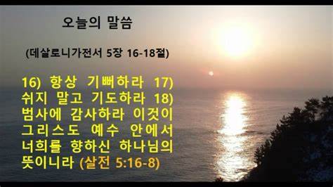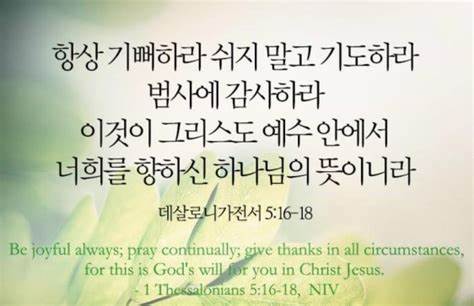 오늘도 우리 만나인에게 주신 하나님의 기쁜 소식은 여전히 살전 5:16-18입니다. 함께 봉독하면서 말씀을 마칩니다.