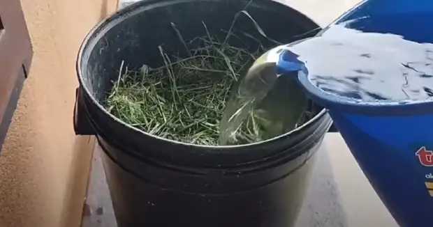 갓 자른 풀은 질소 함량이 높은 효과적인 액체 비료를 만드는 데 사용할 수 있습니다. 비료를 준비하는 것은 매우 간단합니다. 양동이에 자른 풀을 채우고 물로 채우십시오. 양동이를 뚜껑으로 덮고 약초를 2-3주 동안 그대로 둡니다.