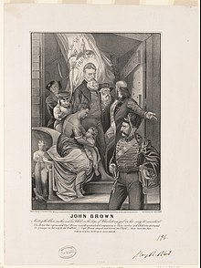 1859년 10월, 브라운은 남부로 확산될 노예 해방 운동을 시작할 의도로 버지니아 하퍼스 페리(오늘날 웨스트 버지니아)에 있는 연방 무기고를 급습했다; 그는 그가 가져오기를 희망했던 개정되고 노예가 없는 미국을 위한 임시 헌법을 준비했다.그는 무기고를 점령했지만 7명이 사망하고 10명 이상이 부상했다.브라운은 무기고에서 나온 무기로 노예들을 무장시킬 생각이었지만, 소수의 노예들만이 그의 반란에 가담했다.도망치지 않은 브라운의 부하들은 지역 민병대와 로버트 E. 리가 이끄는 미 해병대에게 사살되거나 생포되었다.브라운은 버지니아 연방에 대한 반역, 5명의 남자 살해, 노예 폭동을 선동한 혐의로 재판을 받았다.그는 모든 혐의에 대해 유죄 판결을 받았고 1859년 12월 2일 미국 [19][20]: 179 역사상 처음으로 반역죄로 처형되었다.
