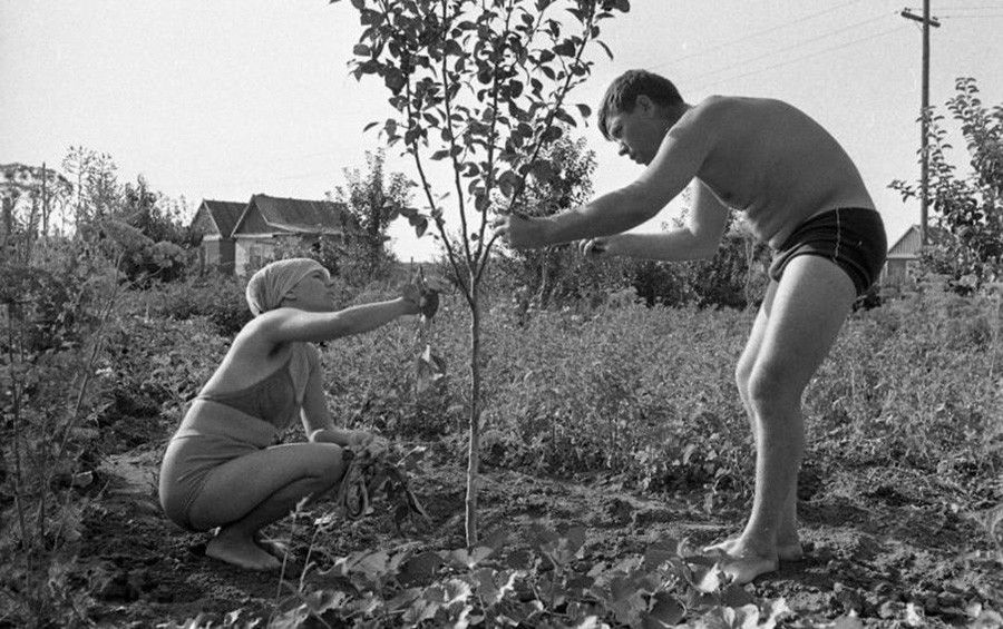 레프 유스티노프/스푸트니크전통적인 소비에트 다차에는 일반적으로 난방이 없었습니다. 따라서 다차 시즌은 일반적으로 5월 공휴일 즈음에 연중 첫 번째 방문과 함께 열렸습니다. 다차는 몇 달 동안 사용하지 않은 후 청소되고 셔터가 열리고 정원 가구가 헛간에서 꺼내져 토지에 배치되었습니다. 또한 겨울철 이후에도 돌봐야했습니다.