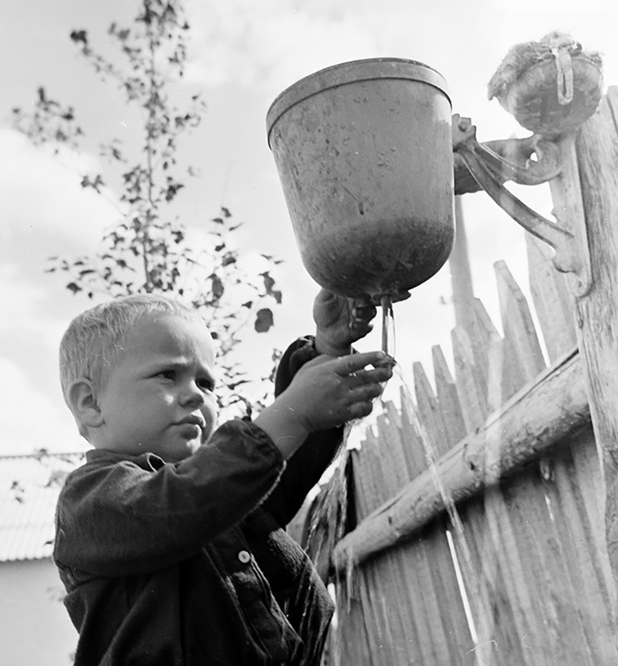 Alexander Mokletsov/스푸트니크대부분의 dachas는 여름 별장이었고 주로 주말에 방문했기 때문에 일반적으로 수돗물이나 하수도가 없었습니다. 그들이 가지고 있었던 것은 물이 나오려면 위로 밀어 올려야 하는 바닥에 마개가 있는 물통으로 구성된 야외 세면대였습니다. 그것의 물은 땅으로 직접 흘러가거나 대야로 흘러갔습니다.