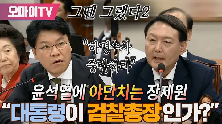 그땐 그랬다! 2019년 7월 8일, 국회에서 열린 검찰총장 후보 인사청문회에서 당시 장제원 국민의힘 의원은 윤석열 후보에게 여러차례 ...