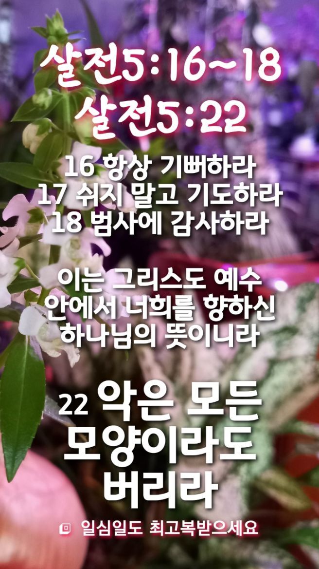 우리 만나인에게 주신 하나님의 말씀을 함께 새기면서 말씀을 마칩니다. 살전 5:16-18 그리고 22절입니다.
