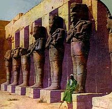 Karnak에 있는 그의 사원(Amun의 Great Temple의 첫 번째 안뜰)에 있는 Ramses III의 오시리드 동상.