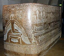 람세스 3세(루브르 박물관)의 붉은 화강암 석관. 뚜껑은 피츠윌리엄 박물관 에 있습니다 . [20]