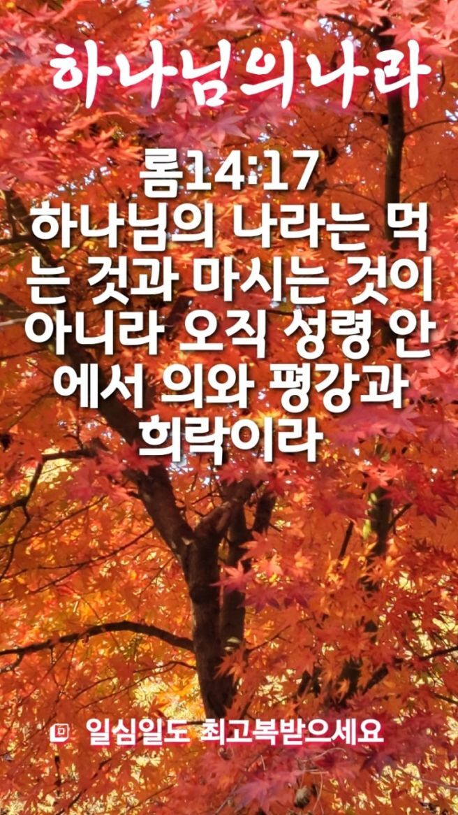 "하나님의 나라는 먹는 것과 마시는 것이 아니요 오직 성령 안에 있는 의와 평강과 희락이니라 " [롬14:17]고 하셨습니다.