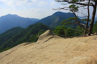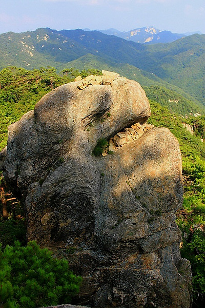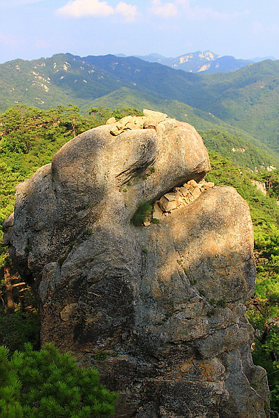 하산길엔 자갈을 입에 물고 웃고 있는듯한 바위가 아주 인상적이다.