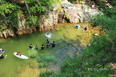 계곡이 유명한 칠보산답게 역시나 물놀이 하는 사람들로 시끌벅적하다.