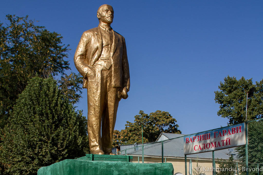 금으로 보는 것 외에도 타지키스탄 남부 도시 쿨롭에 있는 이 레닌 동상에 대해 말씀드릴 수 있는 것이 많이 있습니다 .