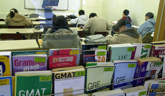 - 국내 한 미국유학 학원의 수업 모습. 강의실 밖에 영어 수험서들이 가득하다. 사진은 기사 내용과 관계 없음. 사진=조선DB
