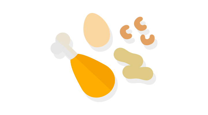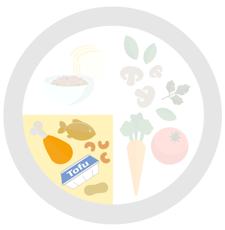 This category includes poultry (e.g. chicken, duck and turkey), meats (e.g. beef, mutton and pork), seafood, eggs, nuts, bean products and low-fat dairy products.