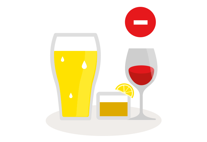 Having drinks with your friends? Healthy adult men should drink no more than 2 standard drinks a day, and women should drink no more than 1 standard drink a day. A standard drink is 1 can (330ml) of regular beer with 5% alcohol content, ½ glass* (100ml) of wine with 15% alcohol content, where the glass height is not more than 15cm, or 1 shot (30ml) of spirits with 40% alcohol content.