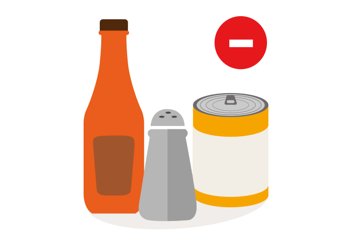 Limit your daily intake of salt to 1 teaspoonful (5 grams or 2000 mg of sodium) daily, whether from sauces, table salt or processed foods. Young children should consume even less.