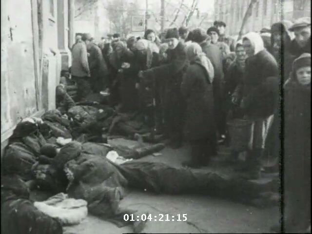 릴 1: 문서. 잔학 행위, 시체, 우는 여성, 소련 군인. 대량 무덤 발굴, 러시아인 울음. 캠프의 시체.